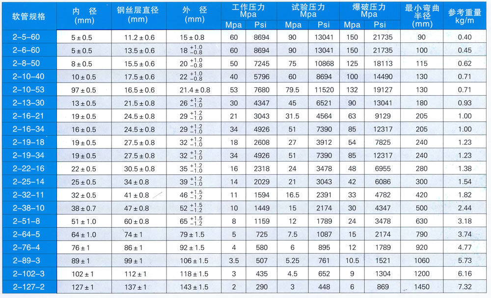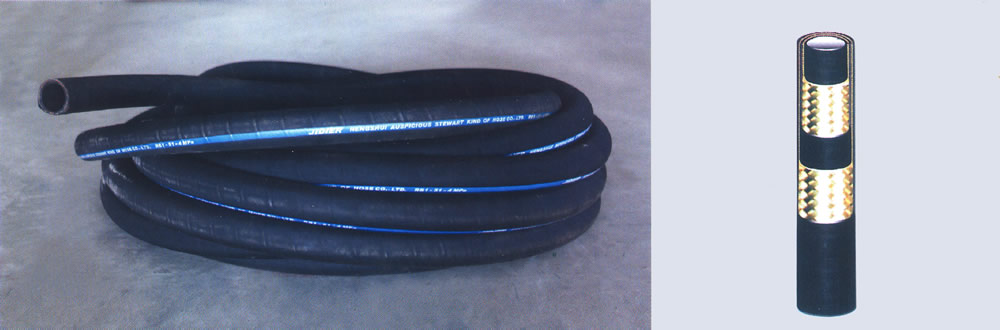 結(jié) 構(gòu):膠管由內(nèi)膠層、兩層鋼絲編織層和外膠層組成。